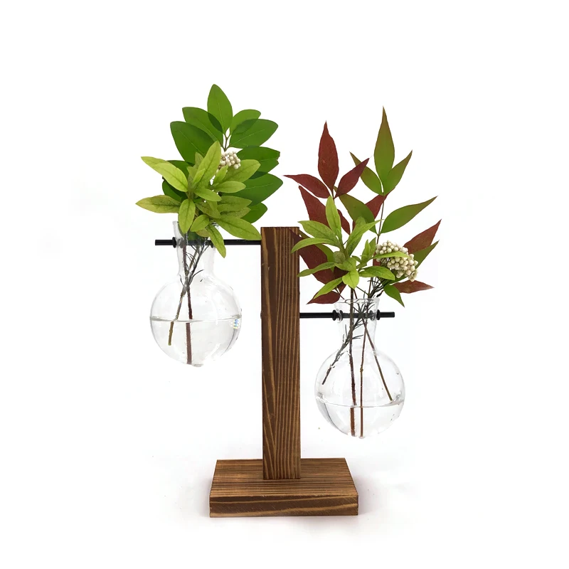 Hydroponic Plant Vases Vintage Flower Pot Transparent Vase Wooden